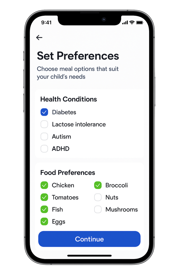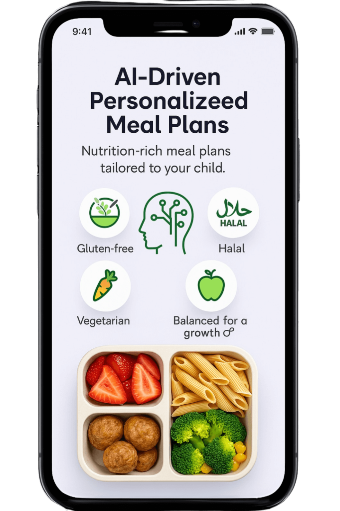 Our smart AI engine crafts nutrition-rich meal plans that adapt to your child’s age, health needs, allergies, and cultural preferences. Whether it’s gluten-free, halal, vegetarian, or balanced for a growth spurt – we’ve got it covered.
